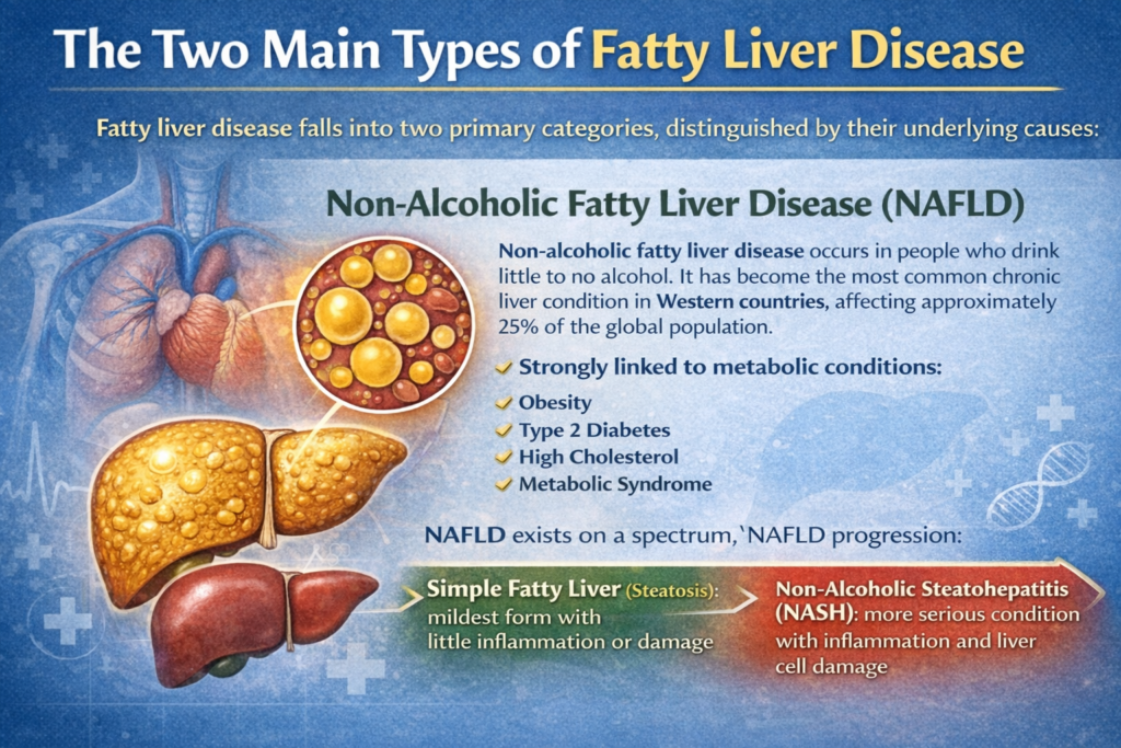 Fatty liver disease falls into two primary categories, distinguished by their underlying causes: